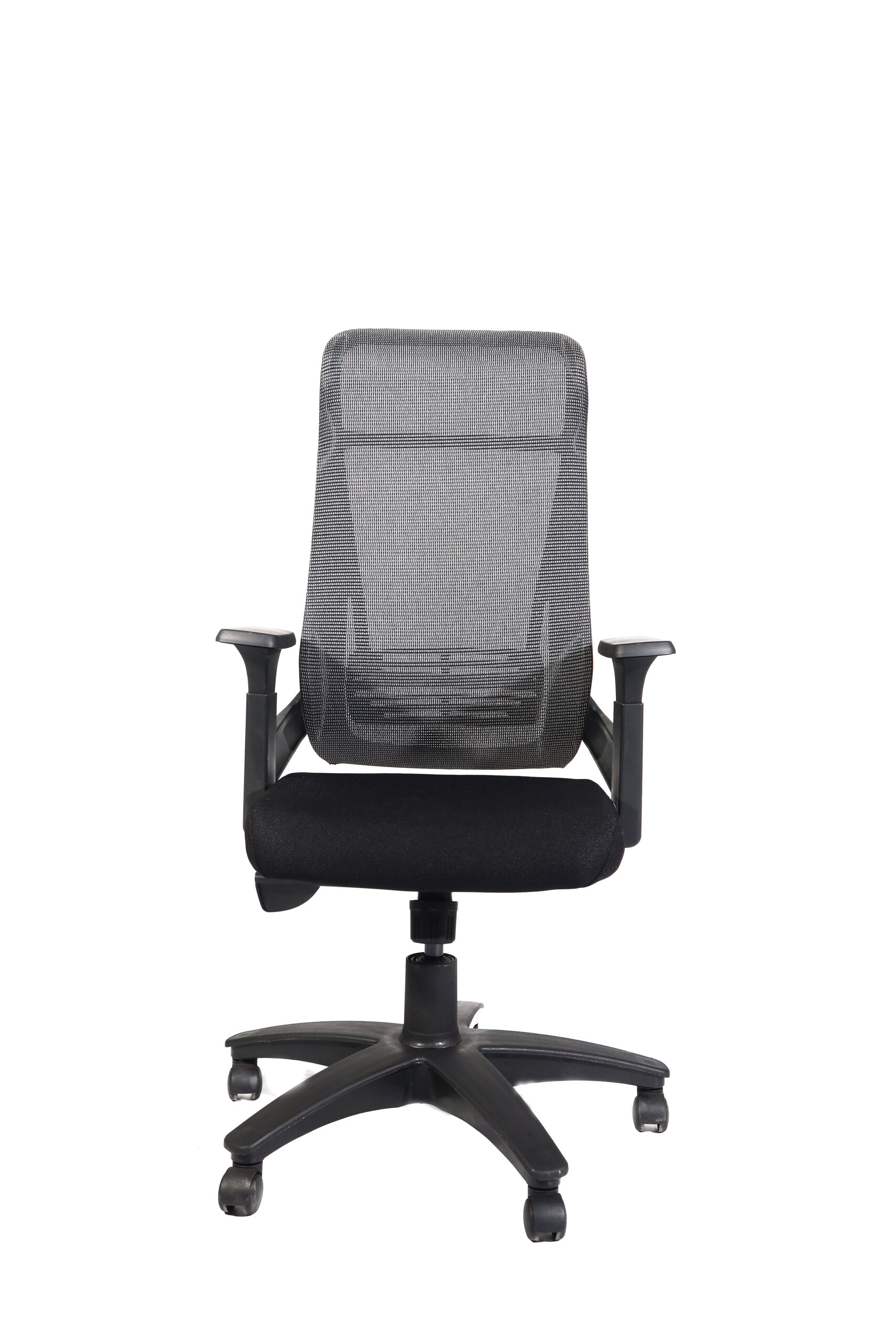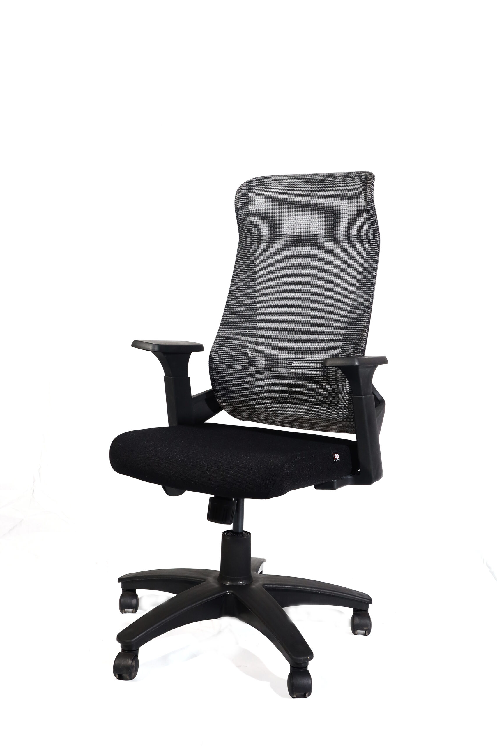 The chair features a highly breathable black mesh backrest that ensures continuous airflow, keeping you cool and comfortable throughout extended periods. The mesh provides reliable, flexible support for your back, promoting a light and airy feel.
