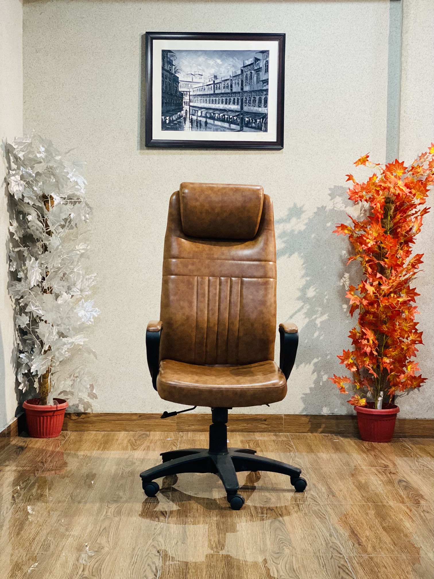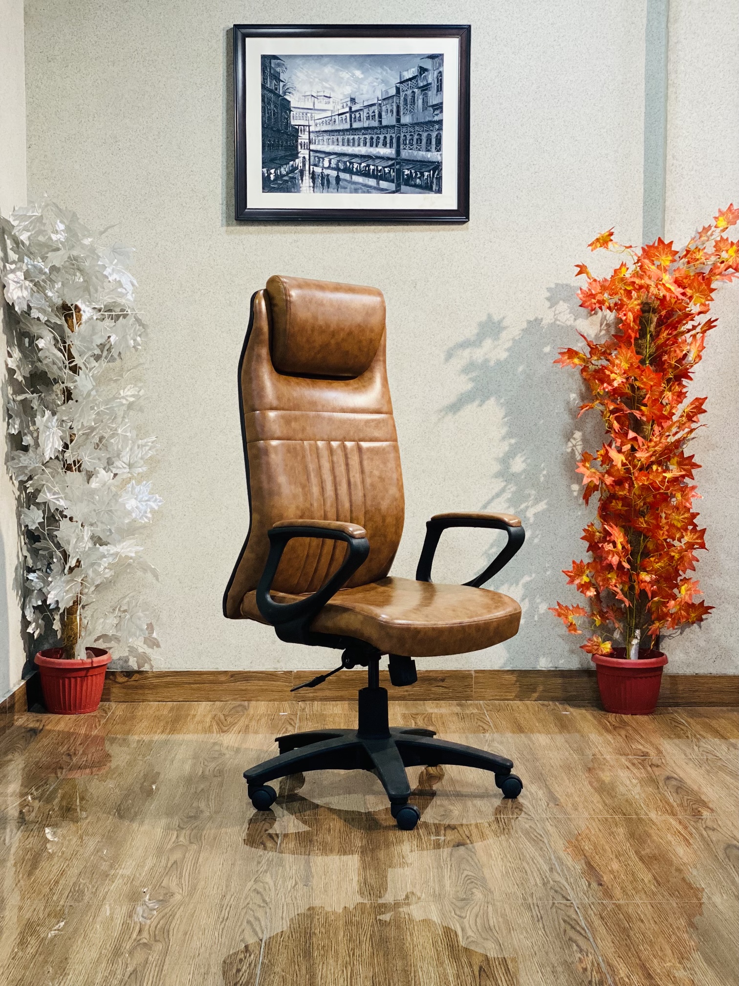 Aston High Back CEO Chair AC 03 From Siaka Furniture. The chair’s height-adjustable feature ensures a perfect, personalized fit, allowing you to easily align your forearms with your desk for optimal typing ergonomics. By combining tailored lumbar support with this precise adjustability, the chair actively works to maintain your spine’s natural ‘S’ curve, making it the most suitable choice for anyone requiring a high level of sustained comfort and back care throughout the workday.