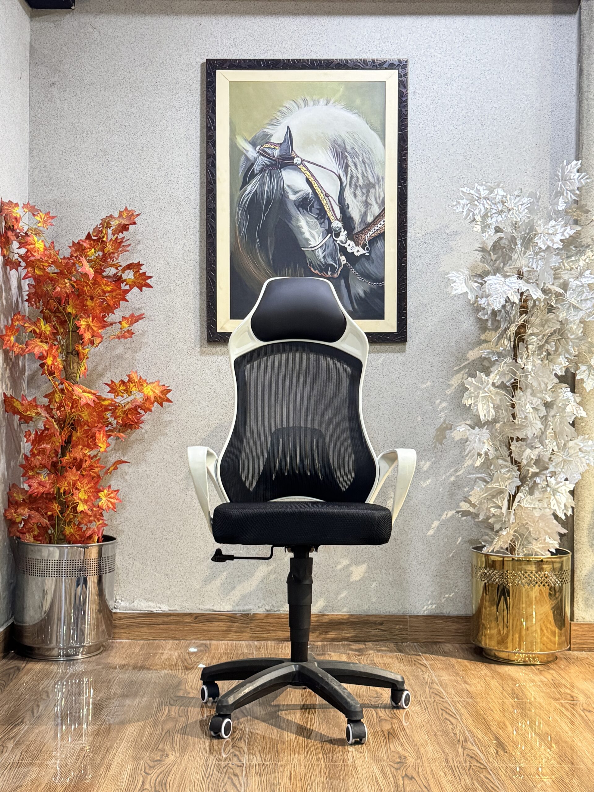 The Apex Comfort’s standout feature is the integrated, heavily padded headrest, providing cushioned support exactly where your neck and head need it most. Built on a durable black nylon base with fixed, contoured armrests, this chair delivers all the essential support and adjustability you need for a productive workday