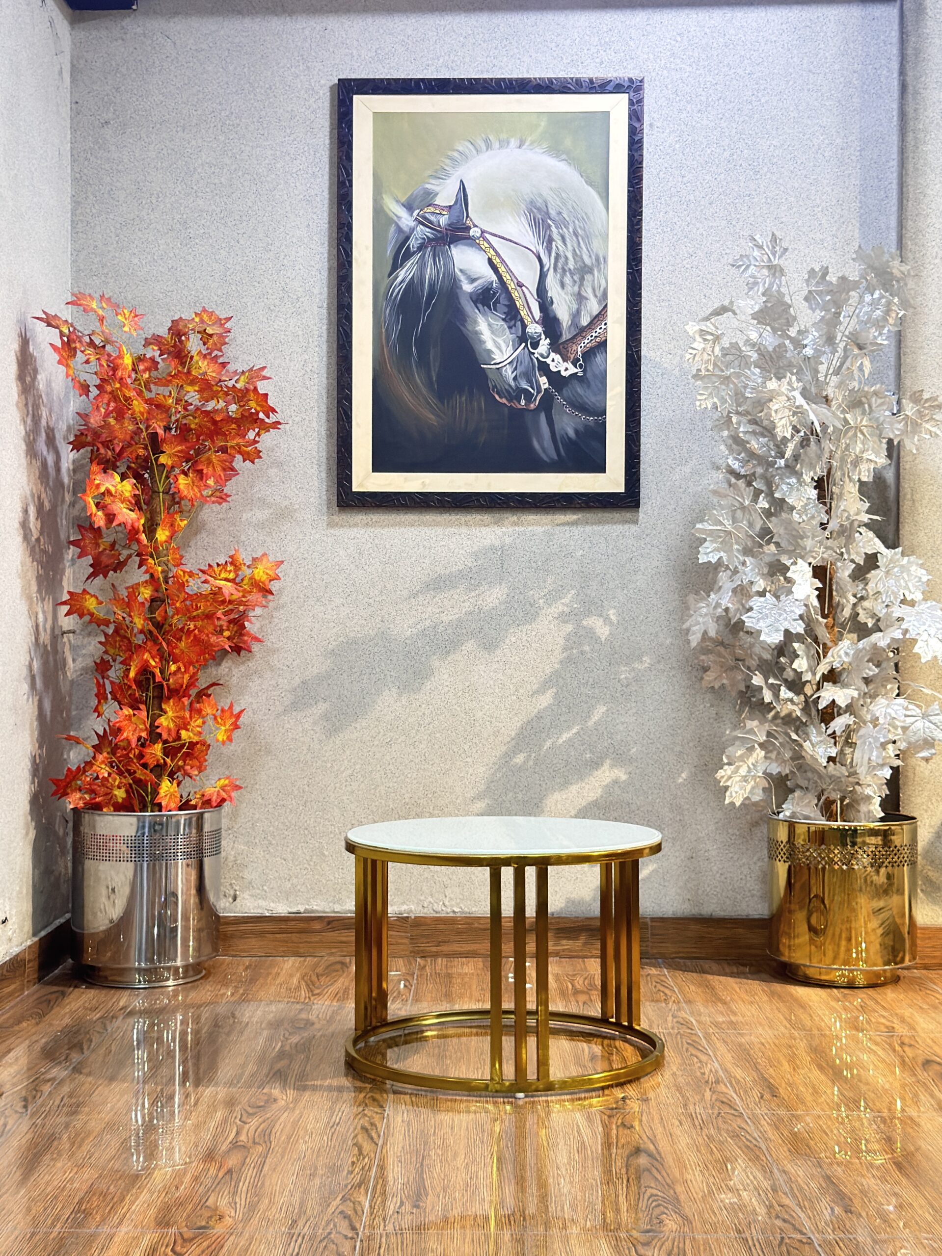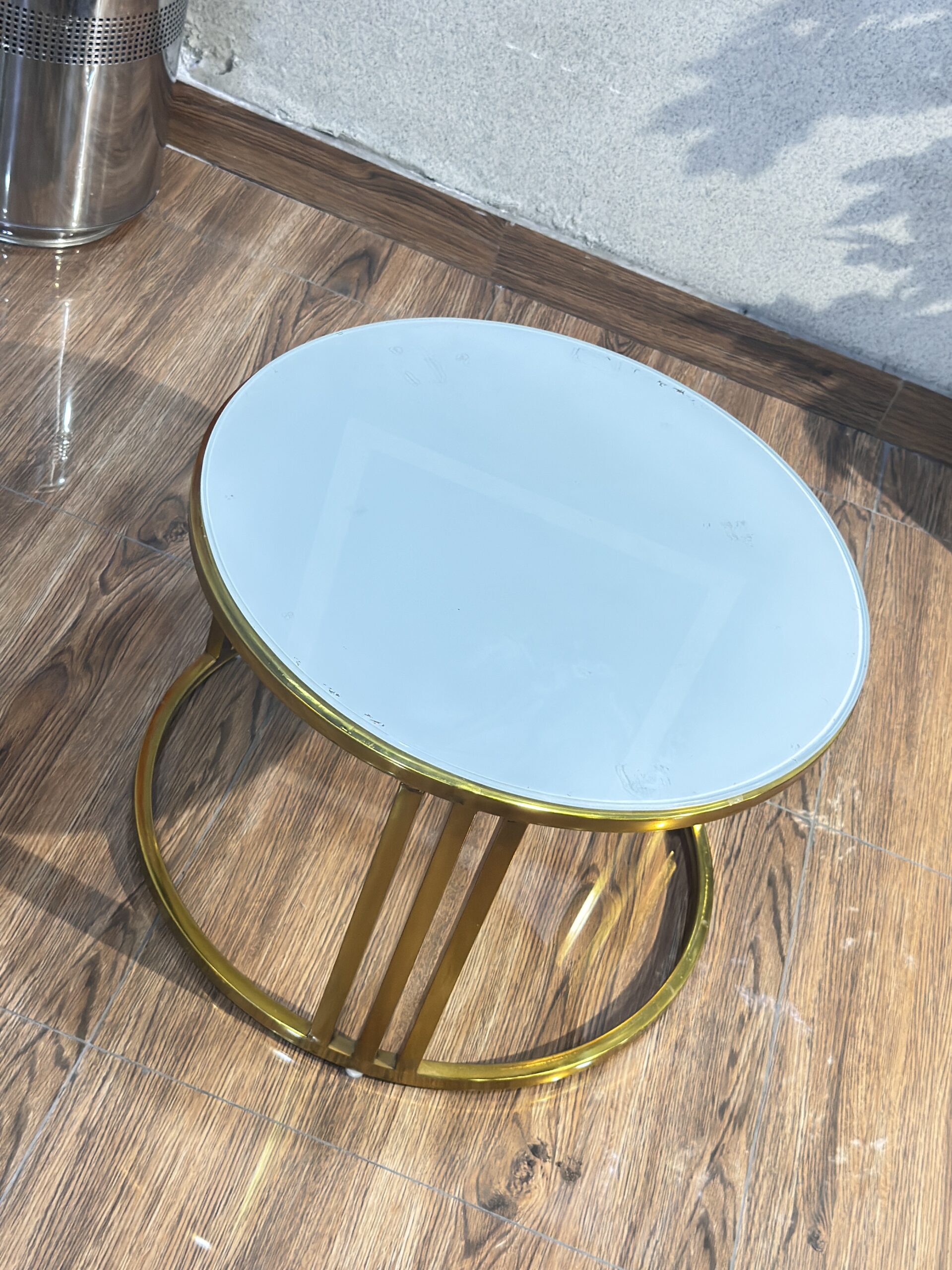 Sophistication meets simplicity in this White & Gold Vertical-Bar Accent Table. This piece is designed for those who prefer a clean, uncluttered aesthetic without sacrificing luxury. The circular top provides a generous surface area for lamps, books, or coffee, while the open-frame design ensures that your room feels light and airy.