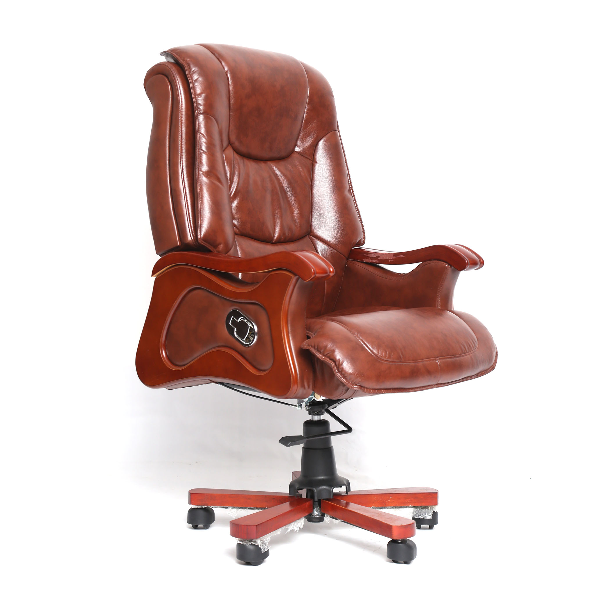 Built on a sturdy wooden wheelbase, this chair offers stability and durability, allowing you to move seamlessly around your workspace with ease. Choose from classic black or rich brown color options to complement your office decor seamlessly.