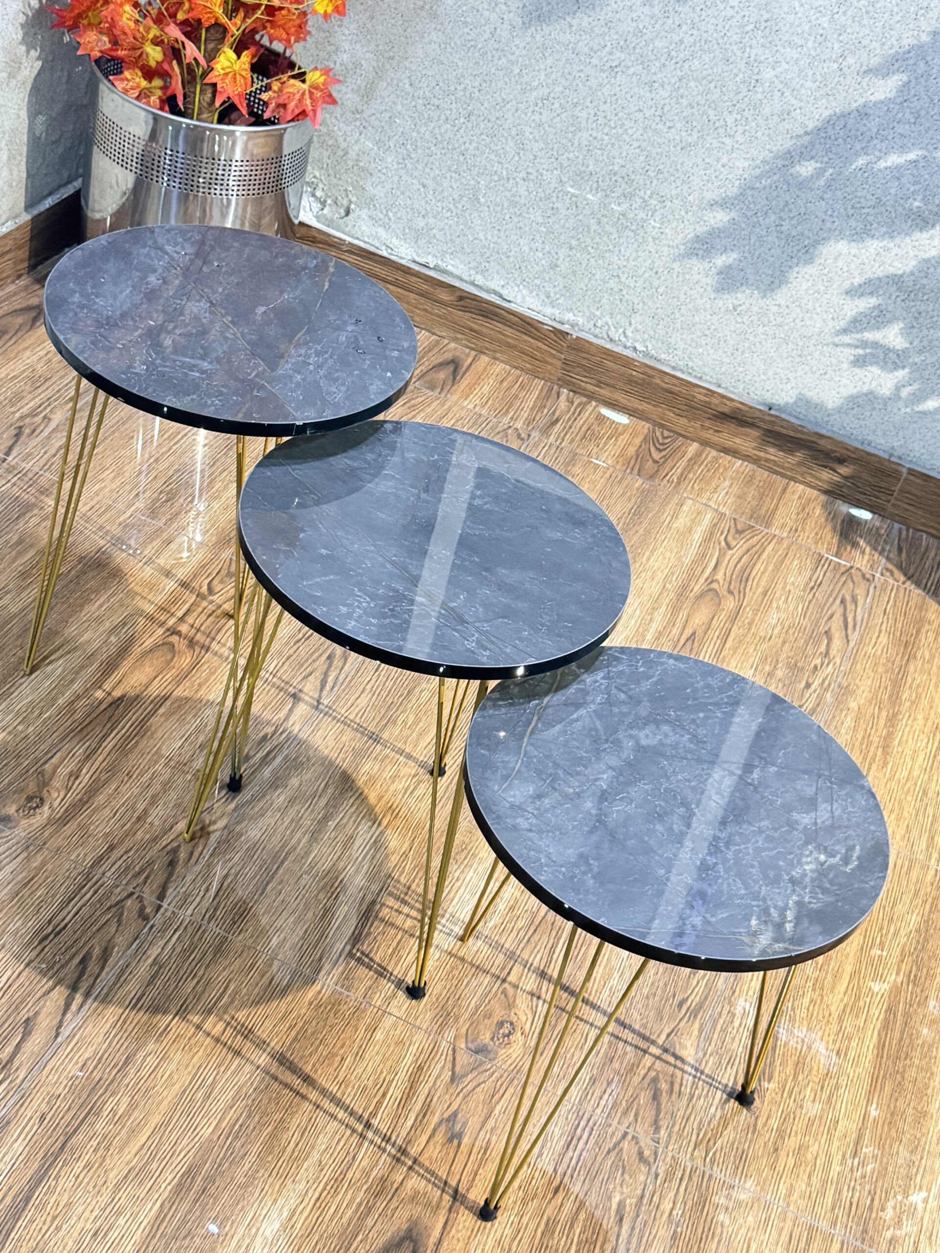 Bring a sense of harmony to your living room with this Three-Piece Circular Nesting Set. Designed with a focus on fluid lines and metallic brilliance, these tables offer a versatile solution for entertaining. The round profile is specifically chosen to improve room flow, making it an excellent choice for smaller spaces or rooms with heavy foot traffic where sharp corners might be a concern.
