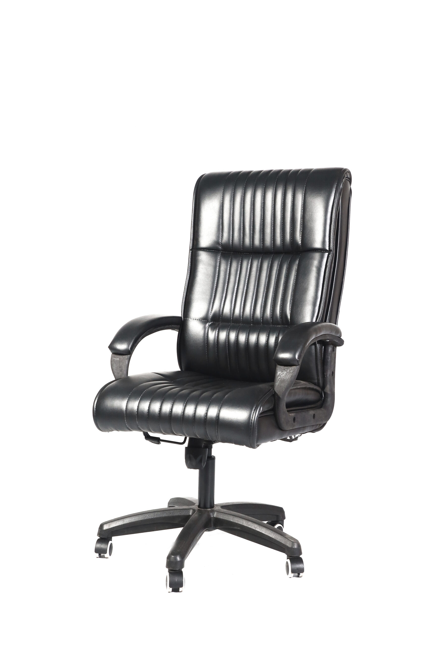 This chair stands out with its bold, horizontally ribbed upholstery, which provides both a distinctive texture and enhanced ergonomic segmentation to support your back and seat. Upholstered in durable black PU leather, The Segment is easy to maintain and built to last.