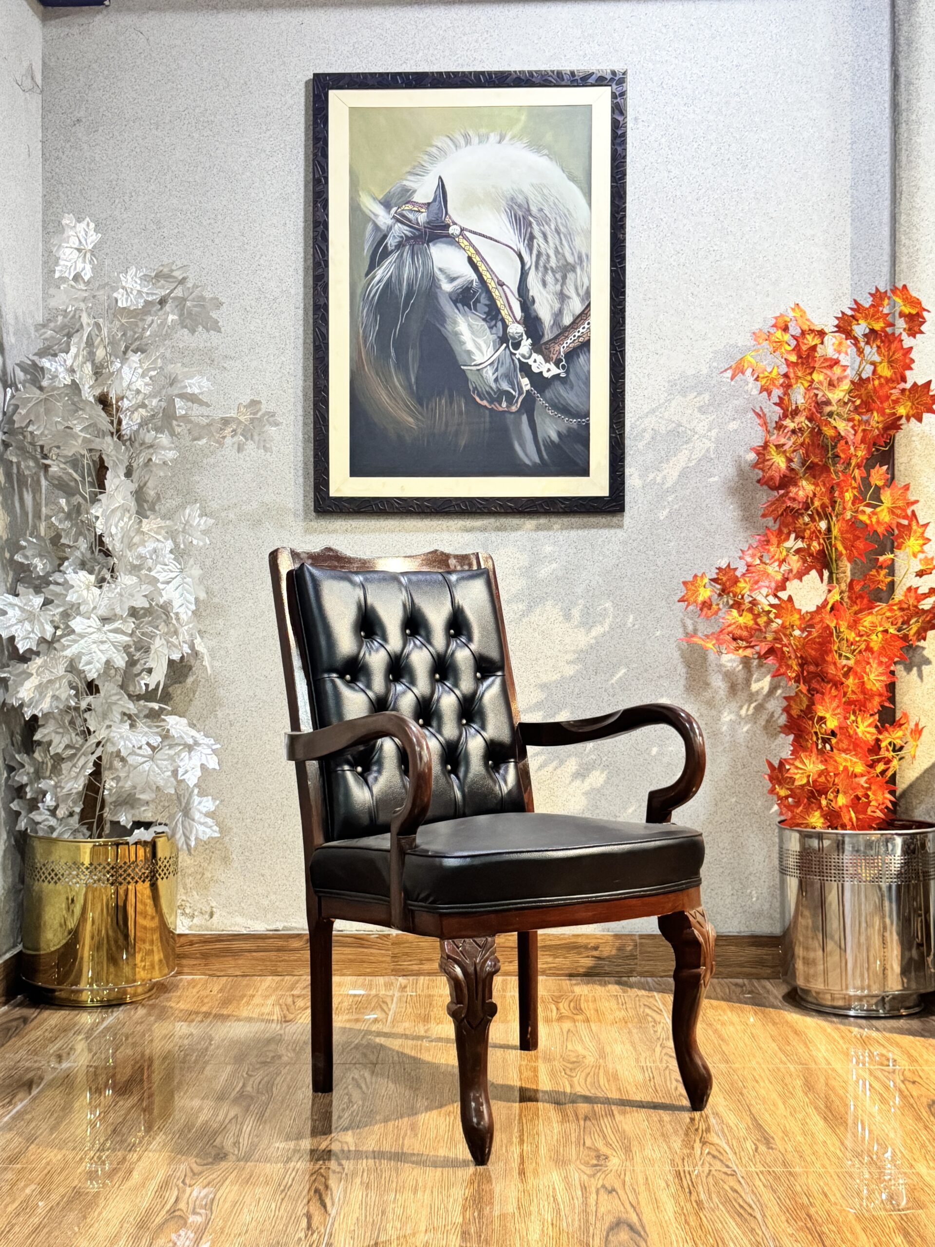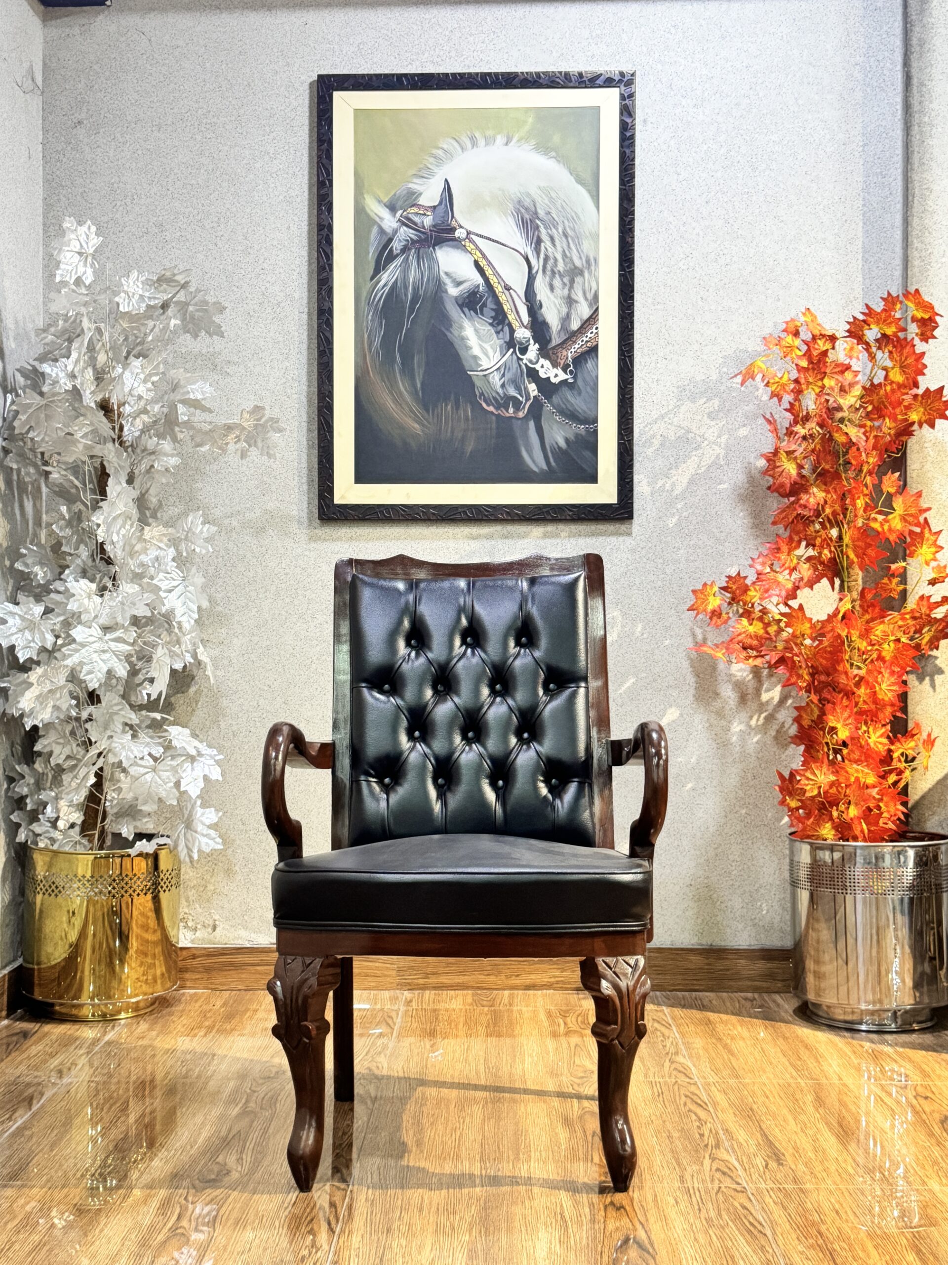 The Victorian Regent Armchair is a statement of heritage and status. Combining the rich textures of classic upholstery with hand-carved woodwork, this chair is designed for executive offices, private libraries, or upscale formal dining rooms that demand a sense of history.